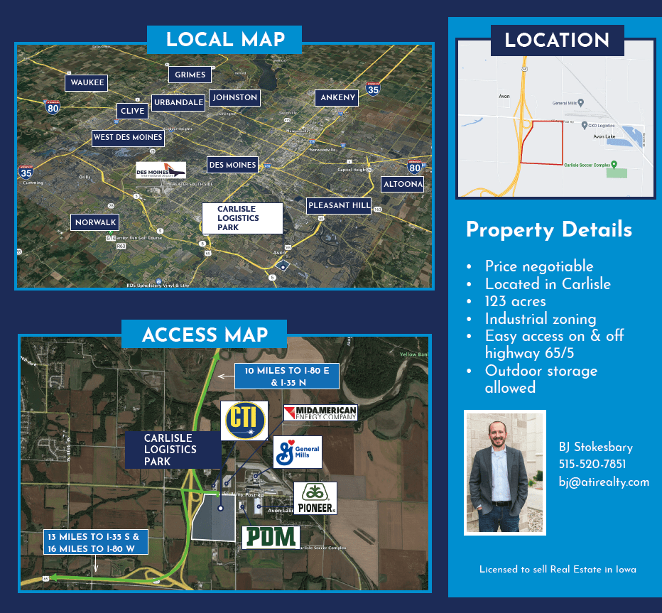 Carlisle Logistics Park Carlisle, IA Downloadable Documents Property Flyer Title Address Description Carlisle Logistics Park6600 SE 52nd St, Carlisle, IA 50047, USA
