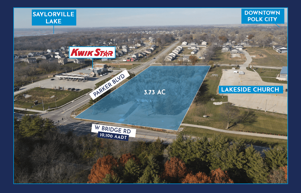 - Directly east of newly constructed Kwik Star & improved intersection at W Bridge Rd & Parker Blvd